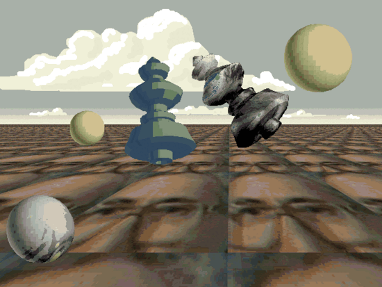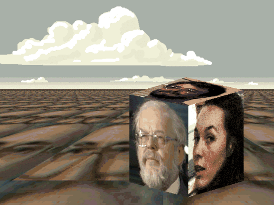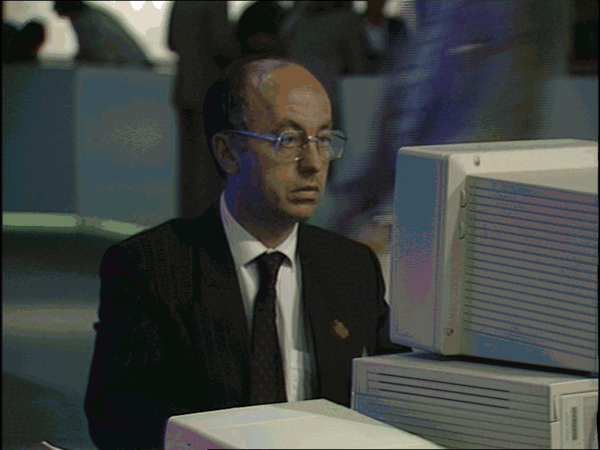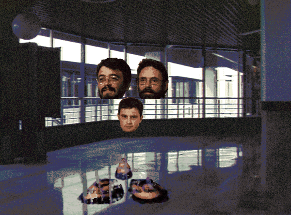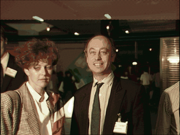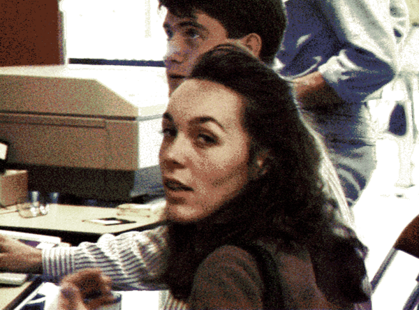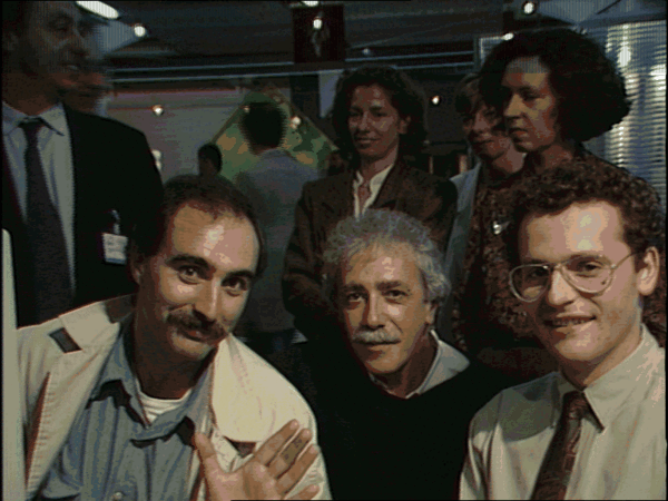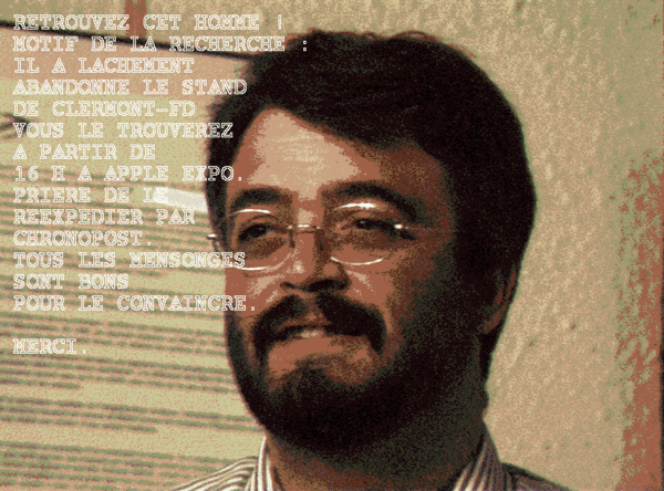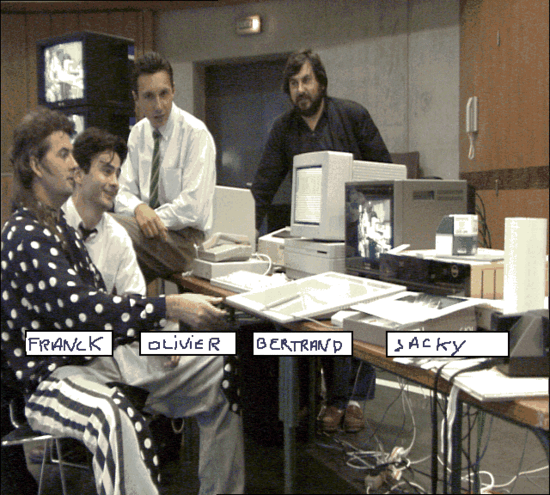 These images were made during Apple Expo in Paris in the late ’80’s. Exchanges took place between the team on the exhibition floor and teams in Toulouse and Nantes and the Electronic Cafe in Santa Monica, California. The event was a playful real-time exchange and reworking of the portraits of people present at the exhibition.